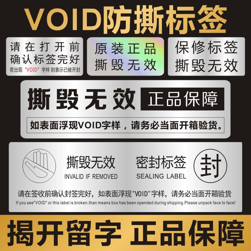VOID防伪防拆标签一次性撕毁无效封条贴纸防开封贴封箱银色定制外卖餐盒封口贴防撕定制亚银镭射封条定制