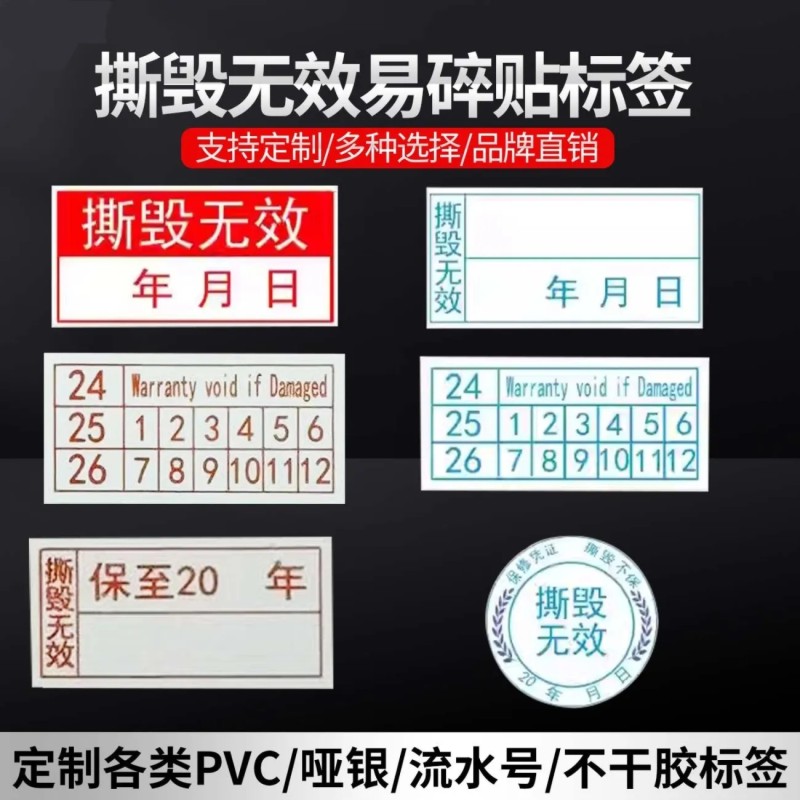 撕毁无效标签保修日期贴纸电子产品电脑手机易碎纸定做商标不干胶