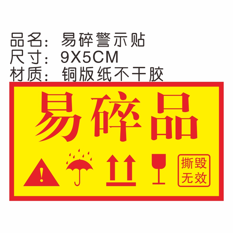 撕毁无效标签贴纸现货铜版纸不干胶酒水易碎品怕湿小心轻放警示贴
