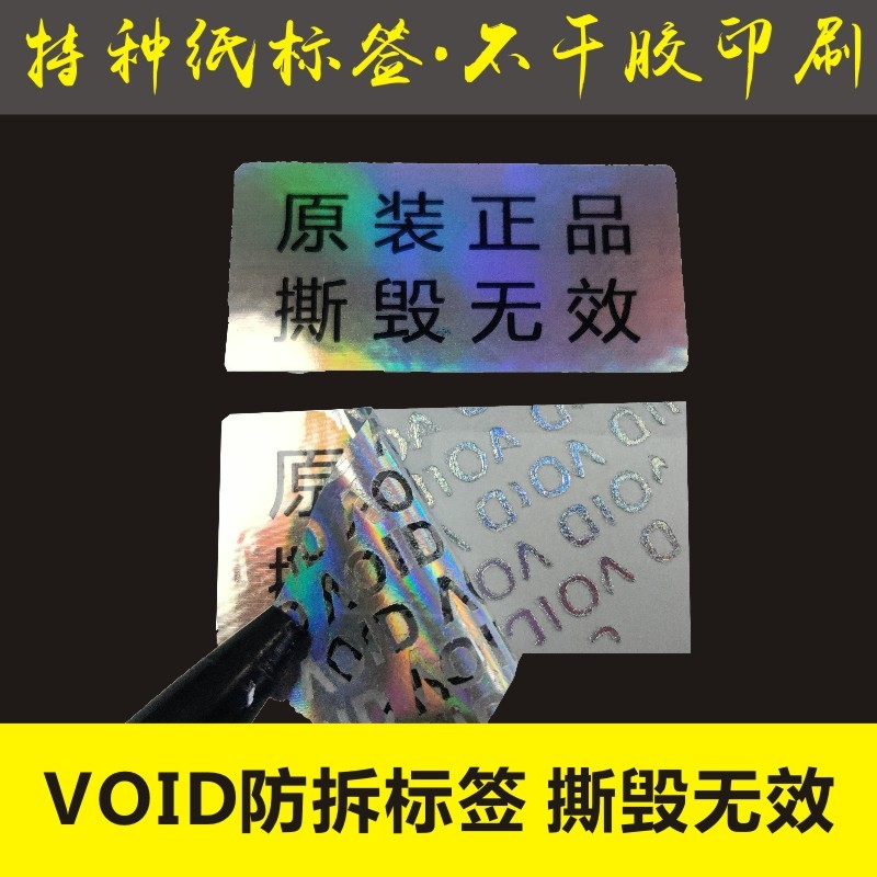 void防伪防拆哑银镭射标签纸一次性易碎纸条码不干胶撕毁无效封条封口贴纸手机贴封箱防撕可定制logo