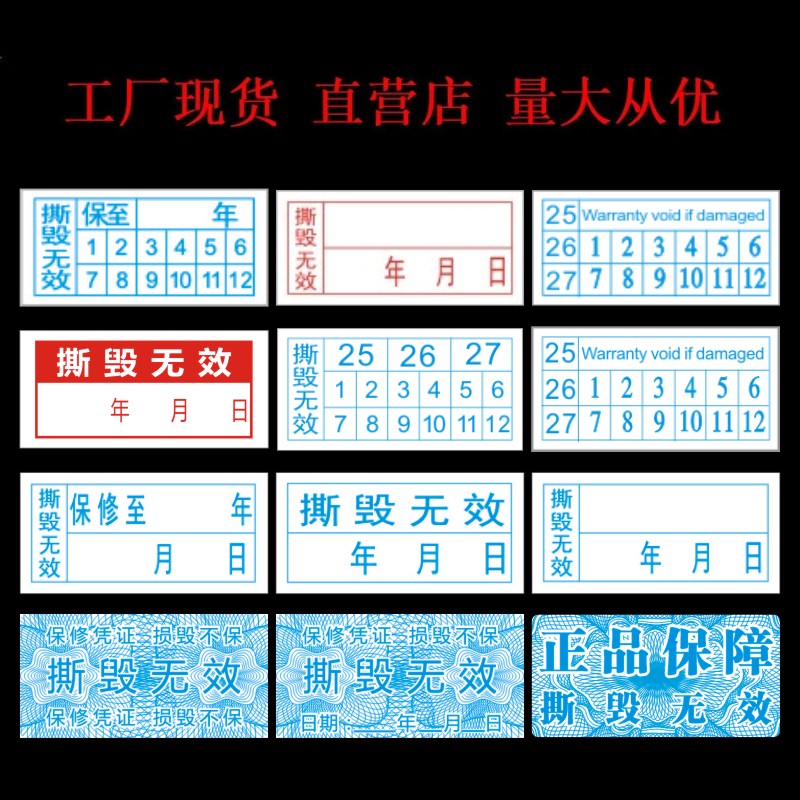 昭章 撕毁无效标签日期贴纸定制易碎贴纸防拆电子电脑手机保修质保一次性不干胶标贴年月日定做防伪封箱封条