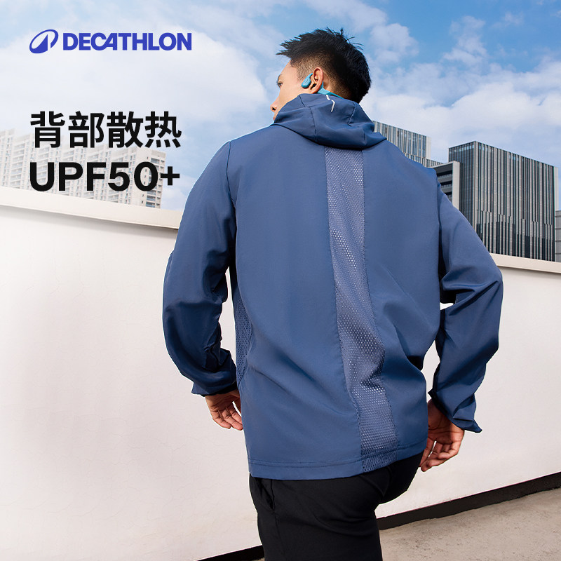 迪卡侬防晒衣秋运动男款跑步外套皮肤衣户外骑行防风跑步风衣SAX1