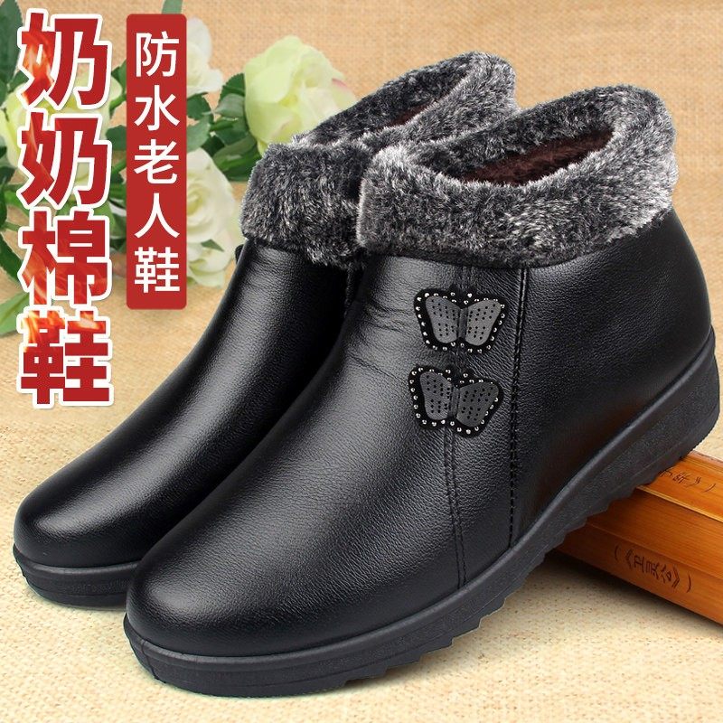 奶奶棉鞋加绒加厚中老年皮鞋女保暖妈妈鞋冬防水老人冬天棉鞋防滑