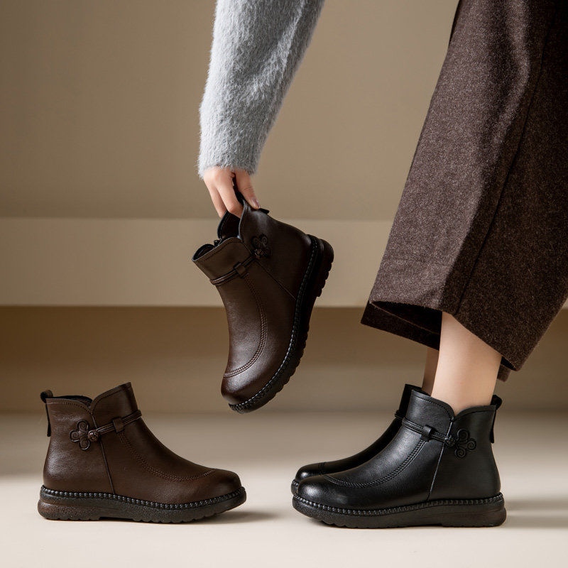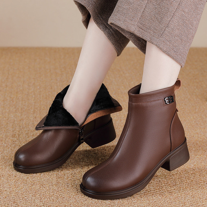 真皮软底短靴妈妈鞋子棉鞋加绒洋气中老年皮鞋女鞋子2025冬季新款