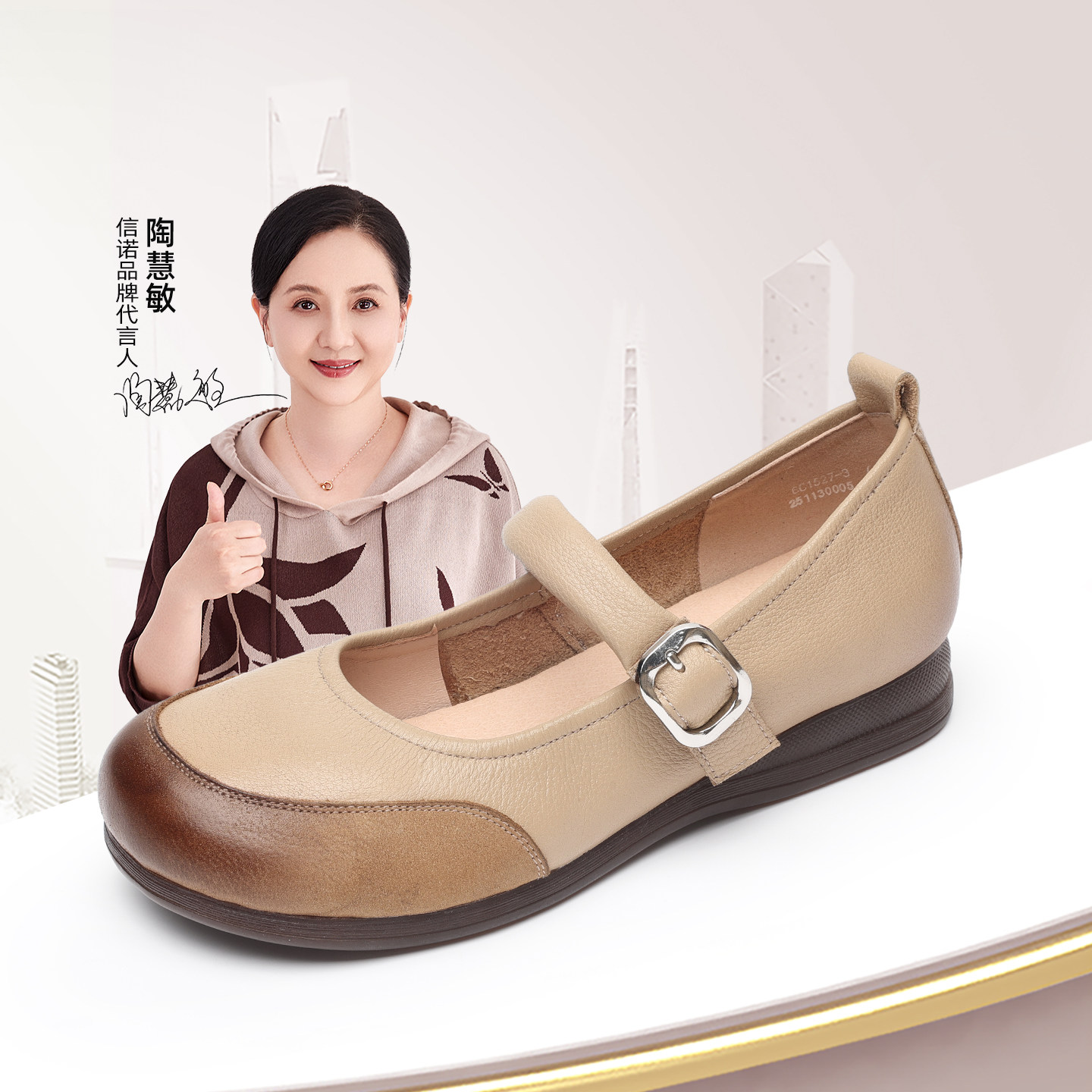 信诺妈妈鞋子真皮软底单鞋复古玛丽珍鞋中老年皮鞋女2026春季新款