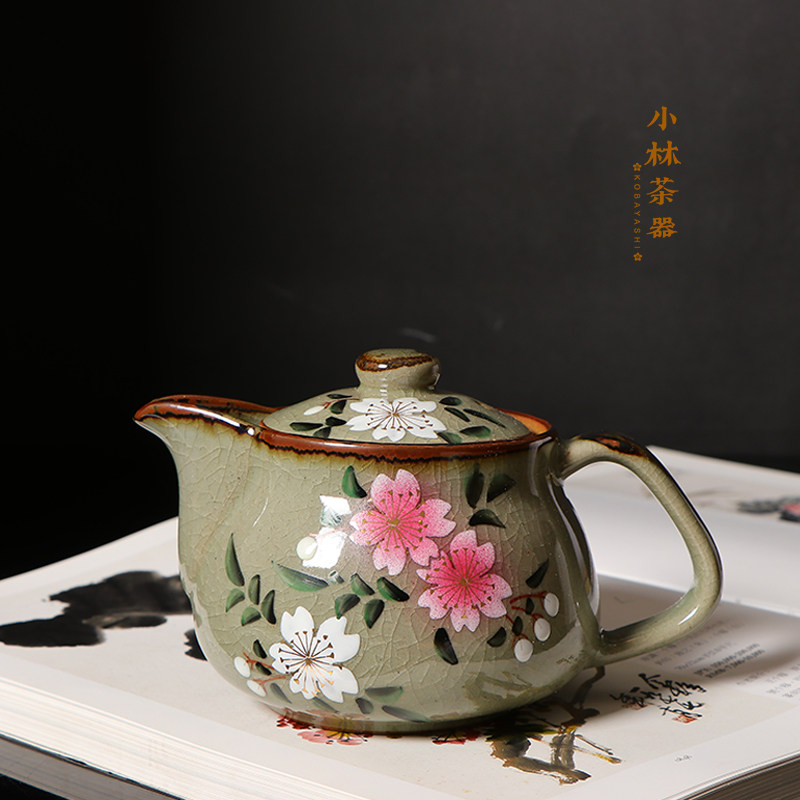 窑变家用中式简约办公室陶瓷泡茶壶提梁单壶餐厅饭店耐高温过滤网