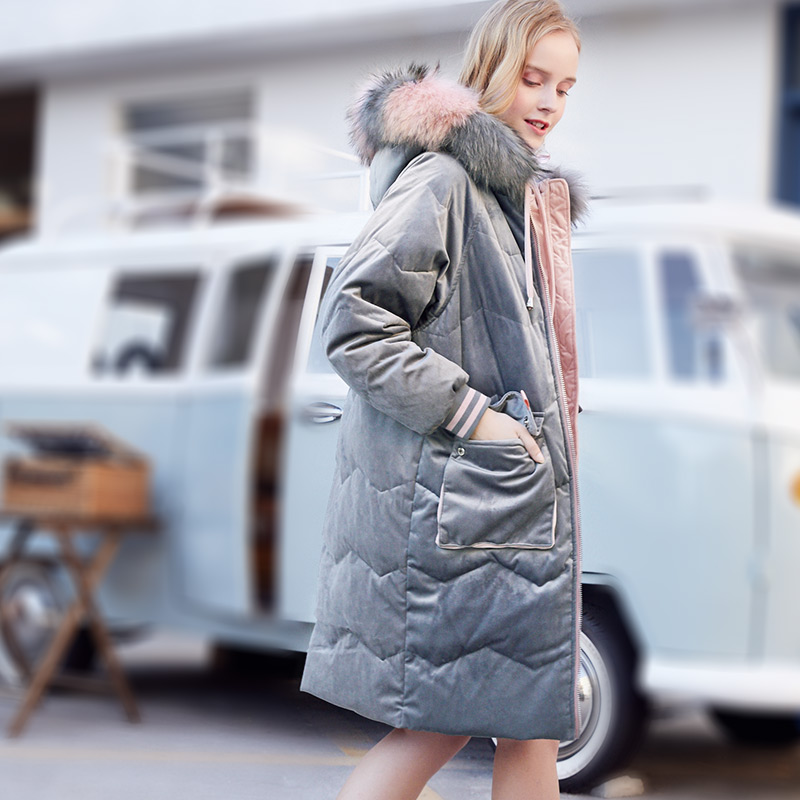 反季香榭颂大毛领羽绒服女中长款加厚白鸭绒韩版宽松过膝显瘦外套