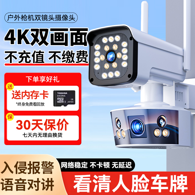 免充值双镜头摄像头wifi家用监控无需网络4G免流量360度手机远程