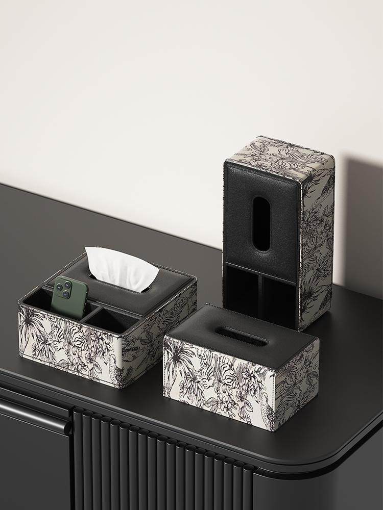 灰色皮革纸巾盒客厅无障碍豪华高端创意饰品咖啡桌餐桌装饰样板间