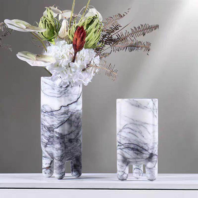 休闲现代大理石直花瓶装饰品客厅咖啡桌餐桌顶部黄色石灰华花器皿