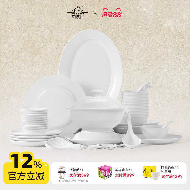 陶溪川景德镇陶瓷暮雪釉下中国色家用高温白瓷器碗盘纯白餐具套装