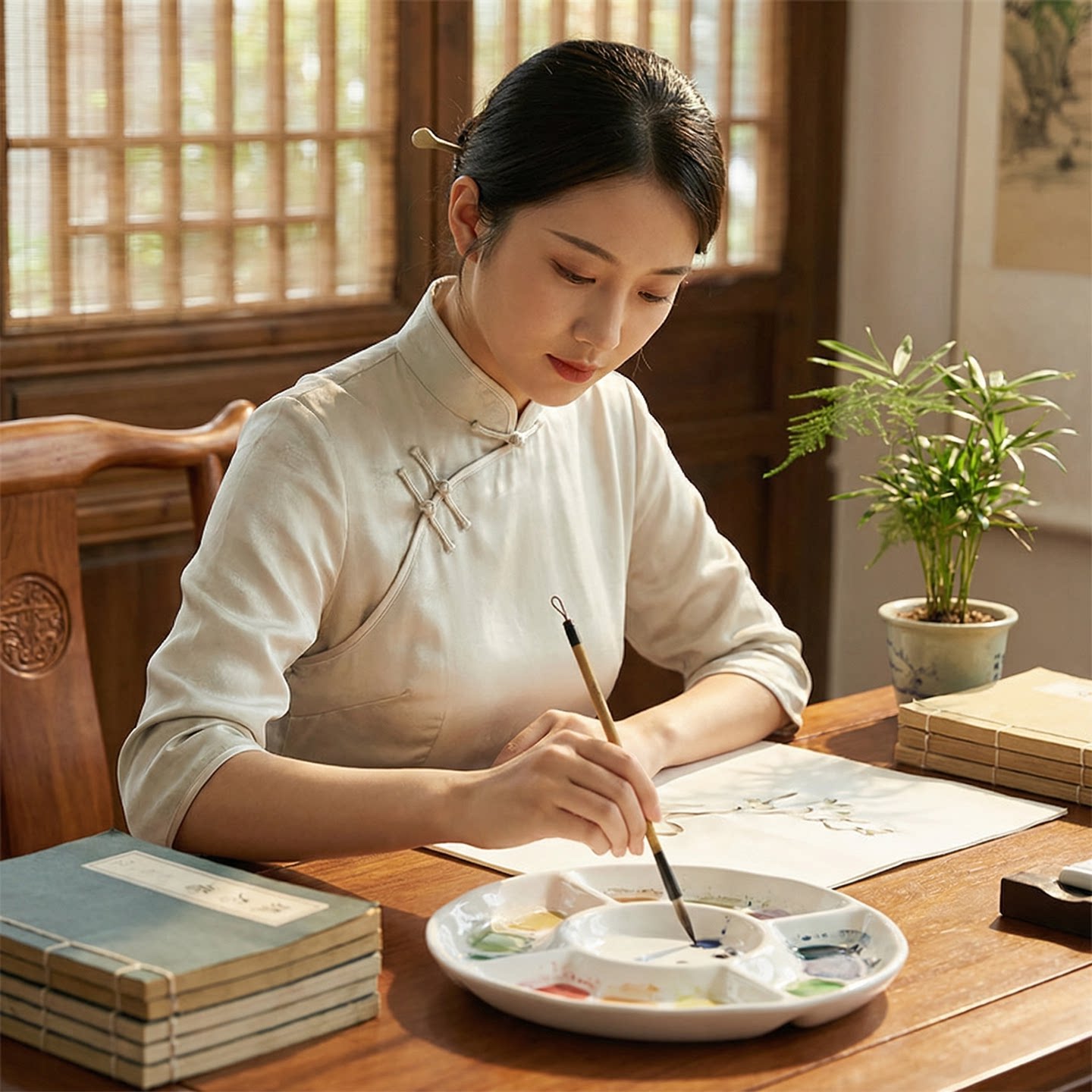 苏州姜思序堂白瓷调色盘8/10寸陶瓷国画颜料盘学生国画水彩美术绘画瓷碟调色碟