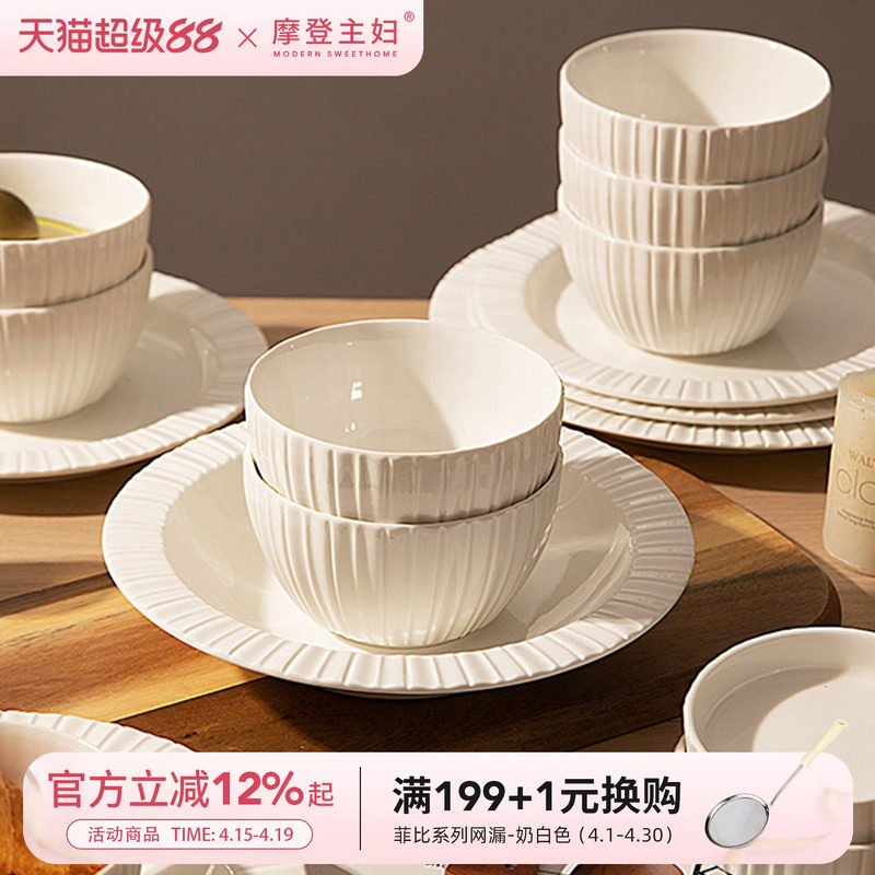 摩登主妇白瓷餐具2026新款碗具乔迁新居新婚礼物碗碟碗盘套装家用