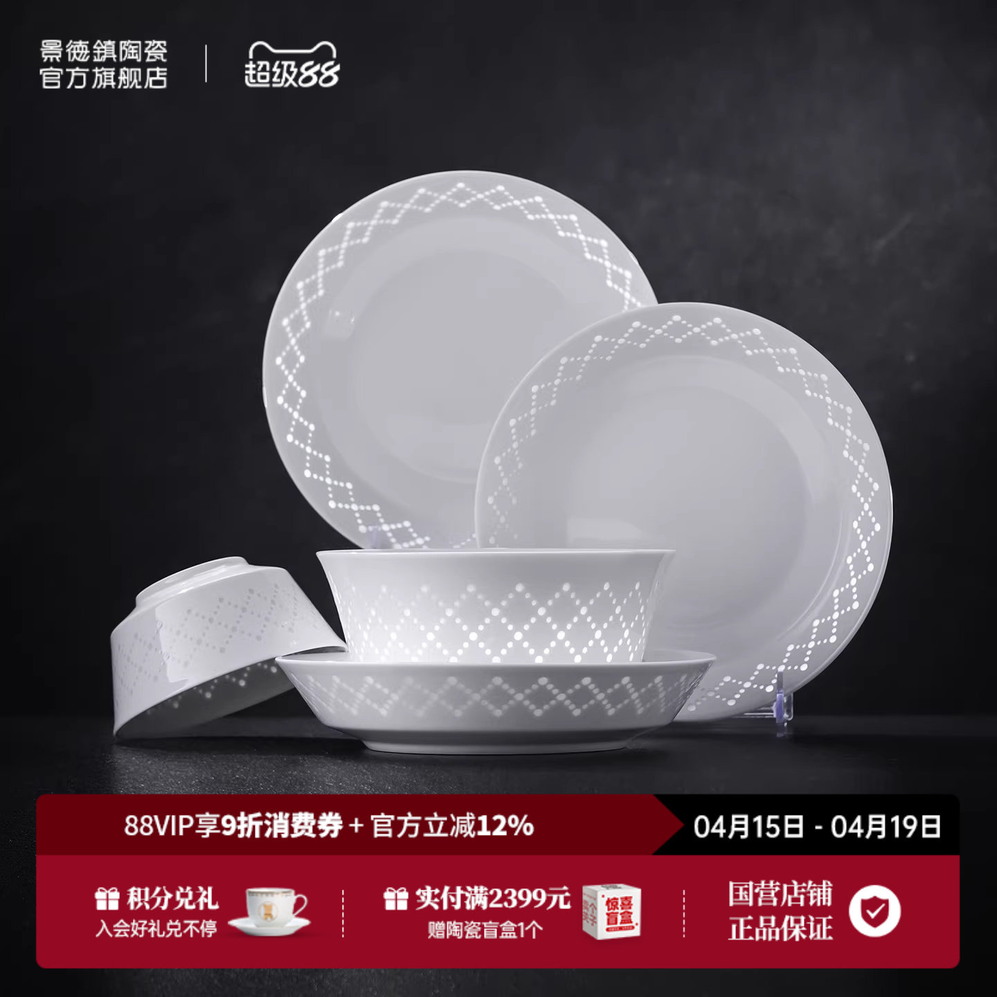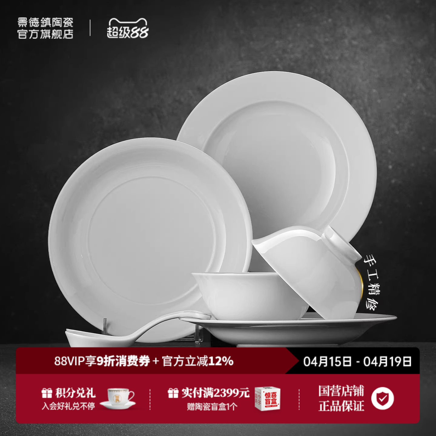 景德镇官方手工餐具陶瓷套装家用高温白瓷饭碗面碗盘子中式乔迁礼