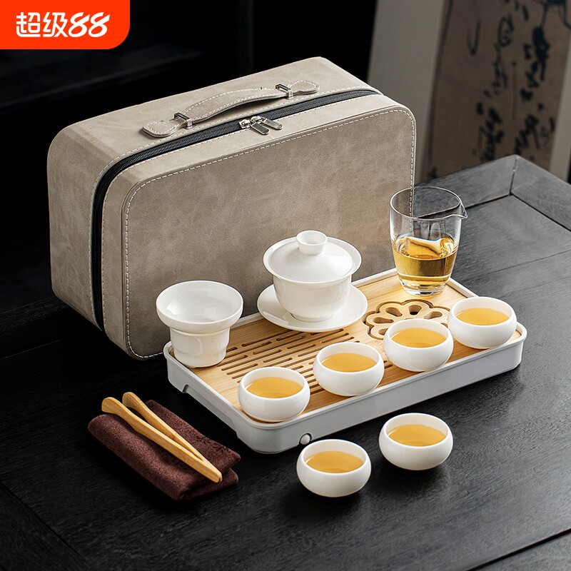 唐丰羊脂玉白瓷旅行茶具套装户外便携泡茶装备一整套带茶盘快客杯