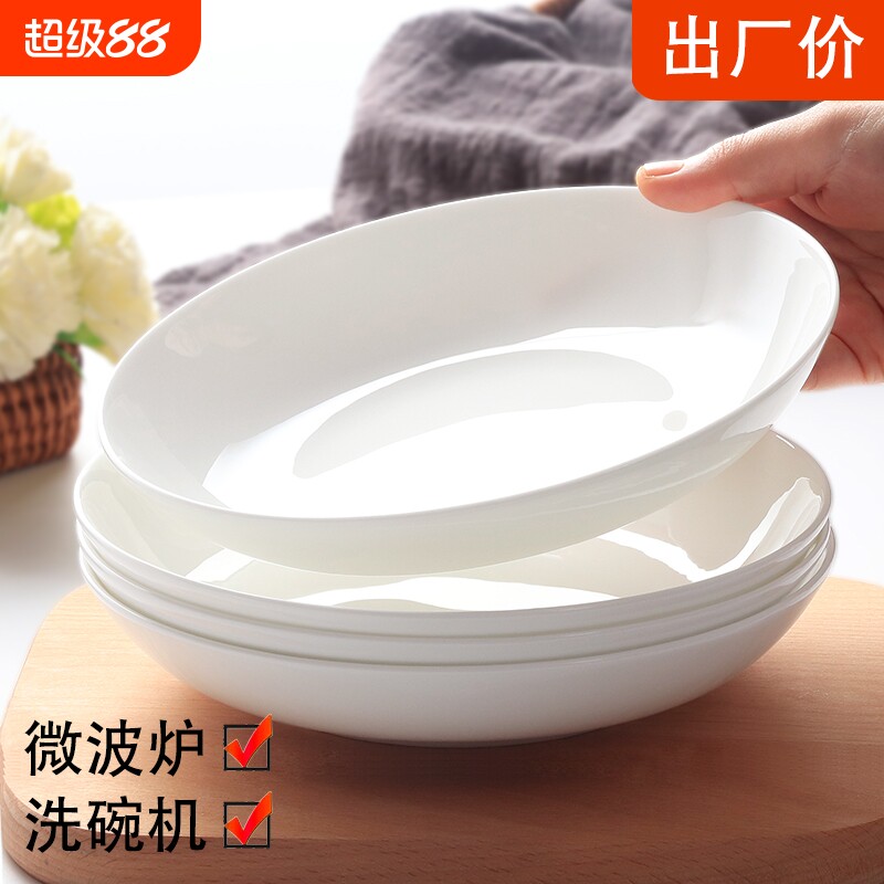 盘子纯白菜盘子菜碟家用深盘白色微波炉全白陶瓷白瓷餐具碟子餐盘