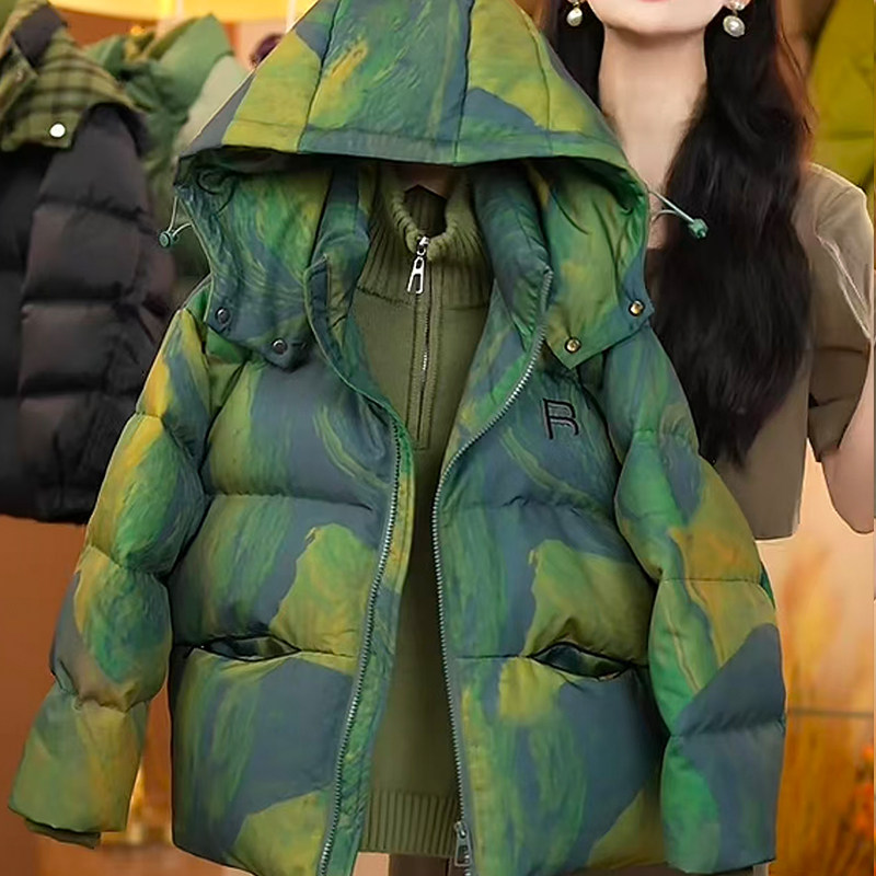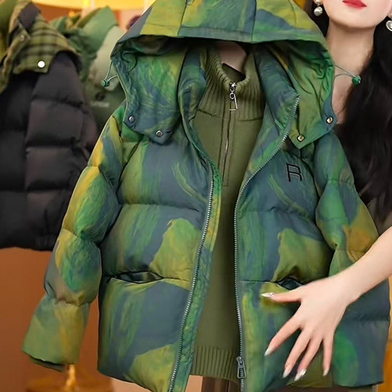 潮牌迷彩字母印花立领学生羽绒服男2025冬季宽松休闲青年鸭绒外套