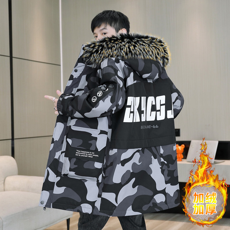 男童羽绒服冬季加厚保暖中大童学生酷帅迷彩外套男宝男式洋气冬装