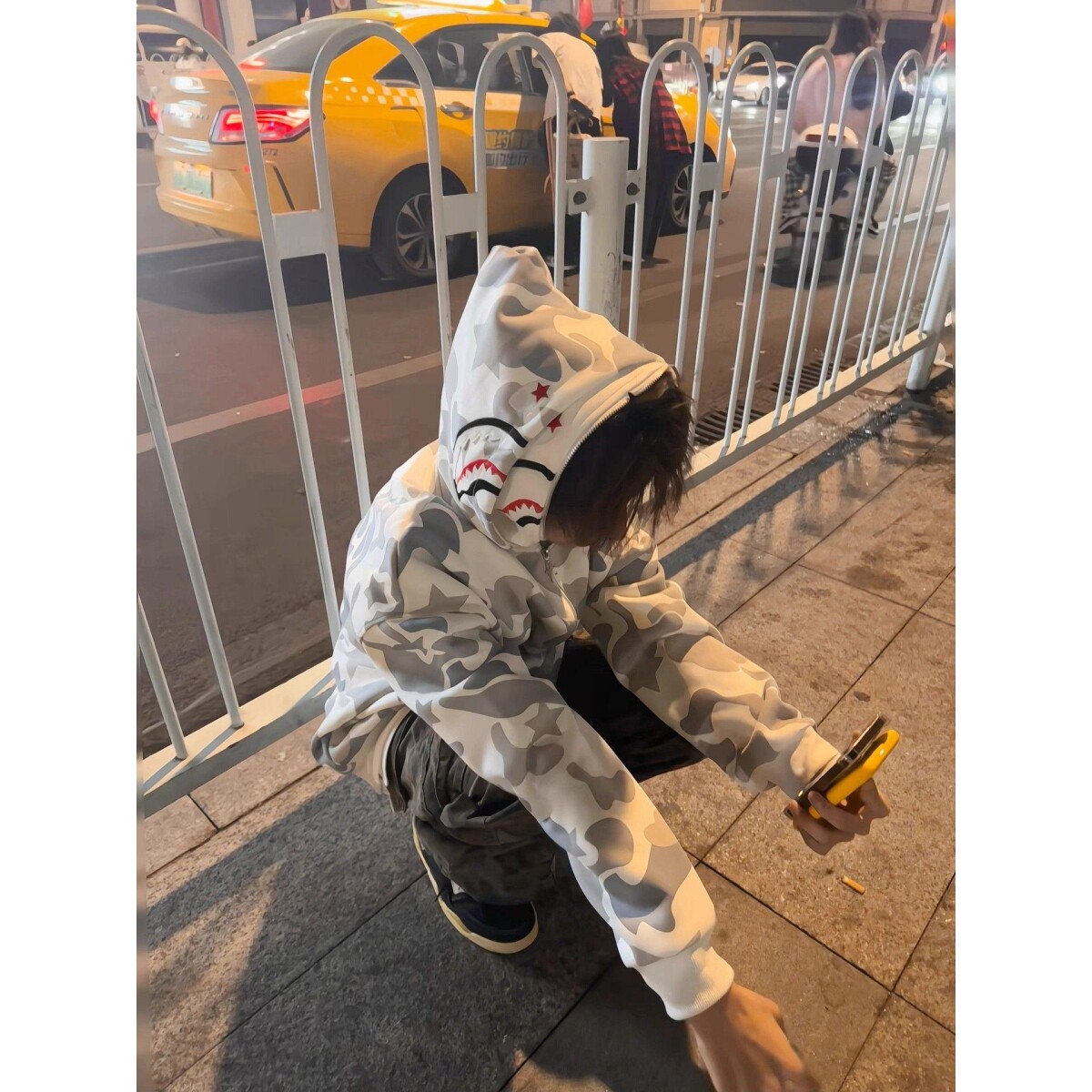 ins鲨鱼外套潮牌宽松刺绣连帽拉链卫衣夜光迷彩联名男女情侣学生