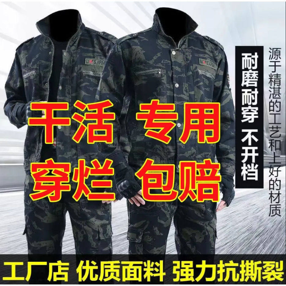 春秋款迷彩服套装男外套户外劳保建筑汽修工作服学生军训服劳保服