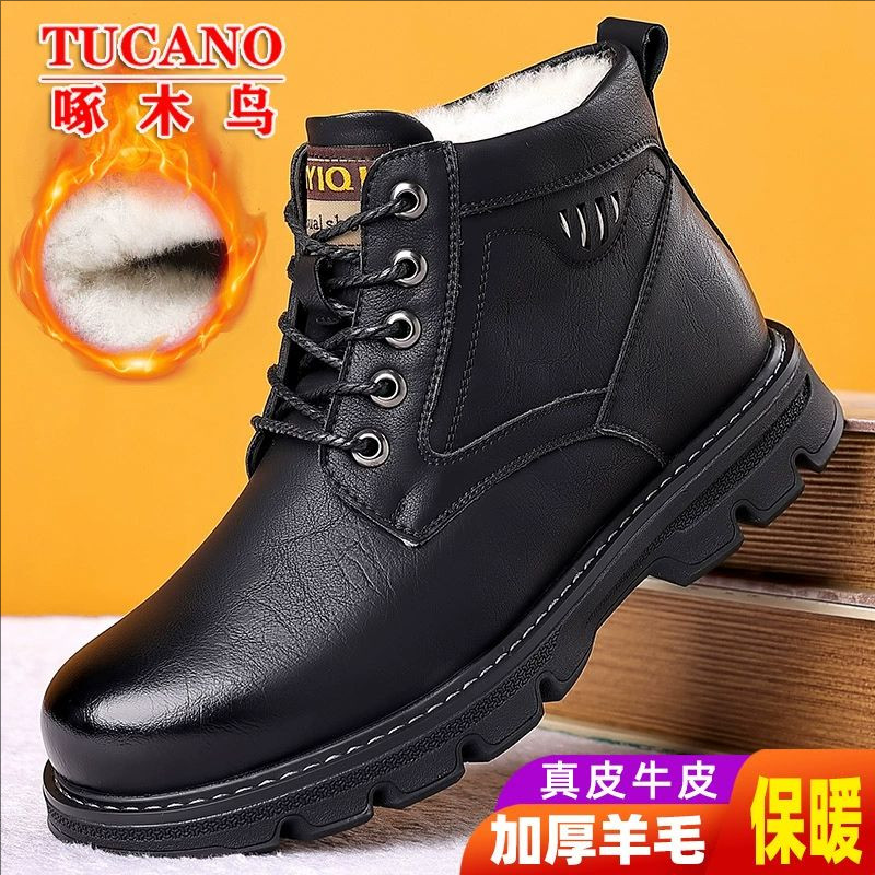 啄木鸟马丁靴男保暖真皮羊毛加厚高帮棉皮鞋工装雪地靴防滑防水潮