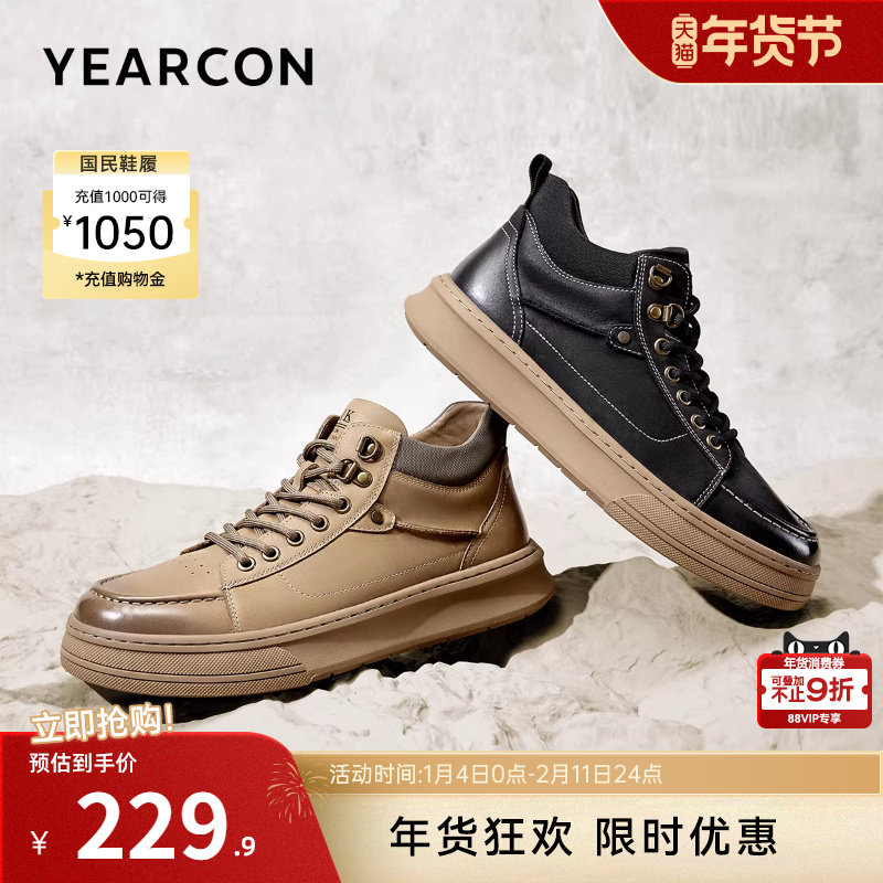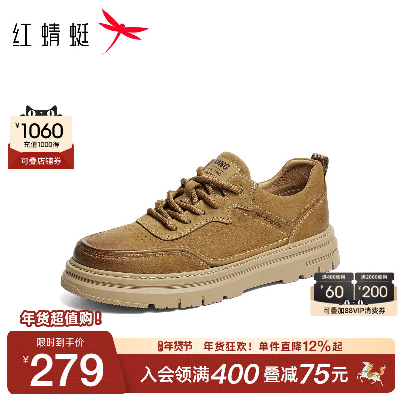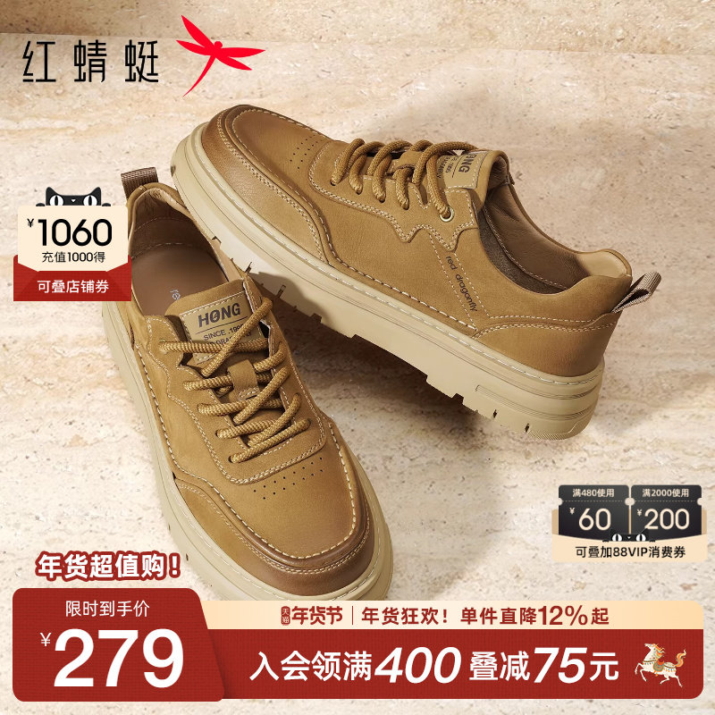 红蜻蜓男鞋2025秋季新款厚底增高休闲板鞋真皮男士皮鞋工装鞋男款