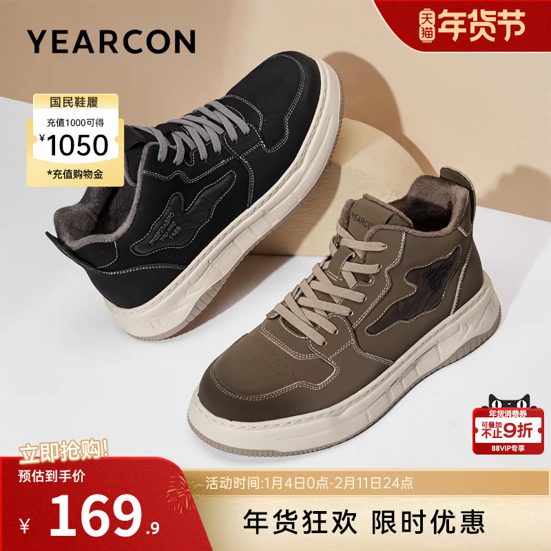 意尔康男鞋冬季板鞋加绒二棉鞋男士皮鞋工装鞋男式高帮运动休闲鞋