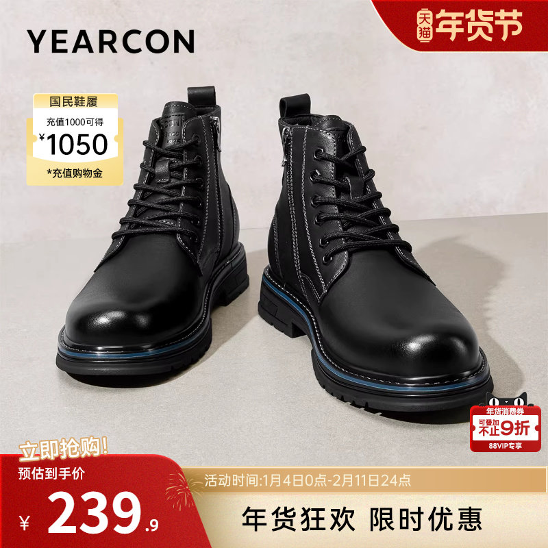 意尔康男鞋秋冬男士复古真皮马丁靴英伦风短靴户外休闲皮鞋工装靴