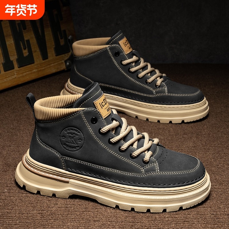 2025秋季新款高帮马丁靴男潮流百搭厚底休闲皮鞋工装板鞋潮鞋男