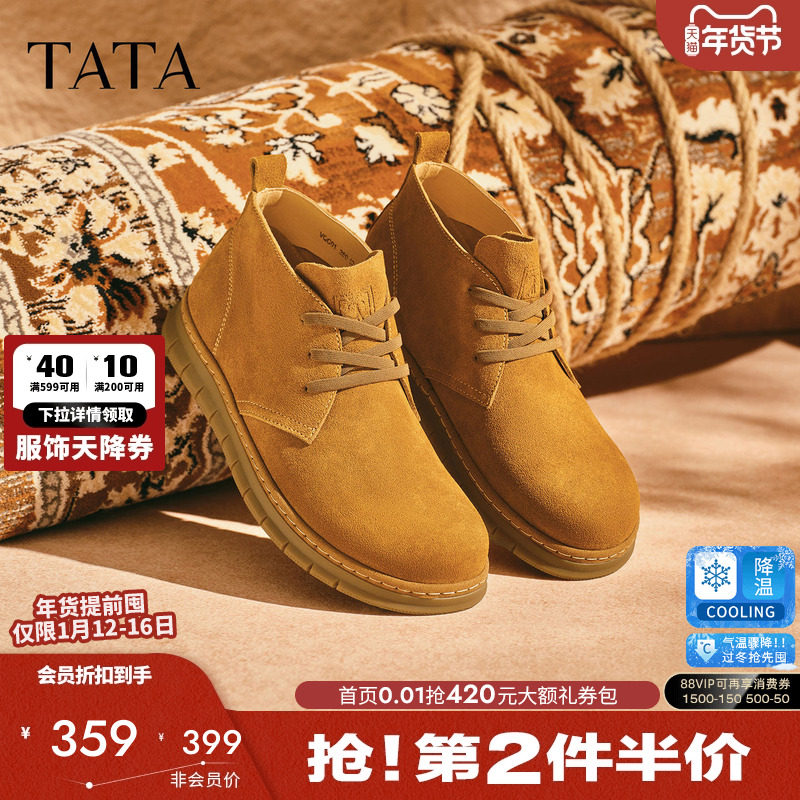 Tata他她英伦马丁靴男靴真皮大黄靴翻毛皮鞋工装靴加绒鞋28948AD4