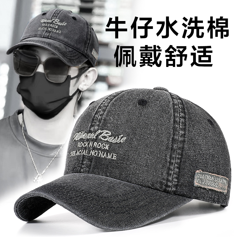 牛仔棒球帽男士品牌高端帽子四季新款水洗牛仔帽子字母鸭舌帽软顶