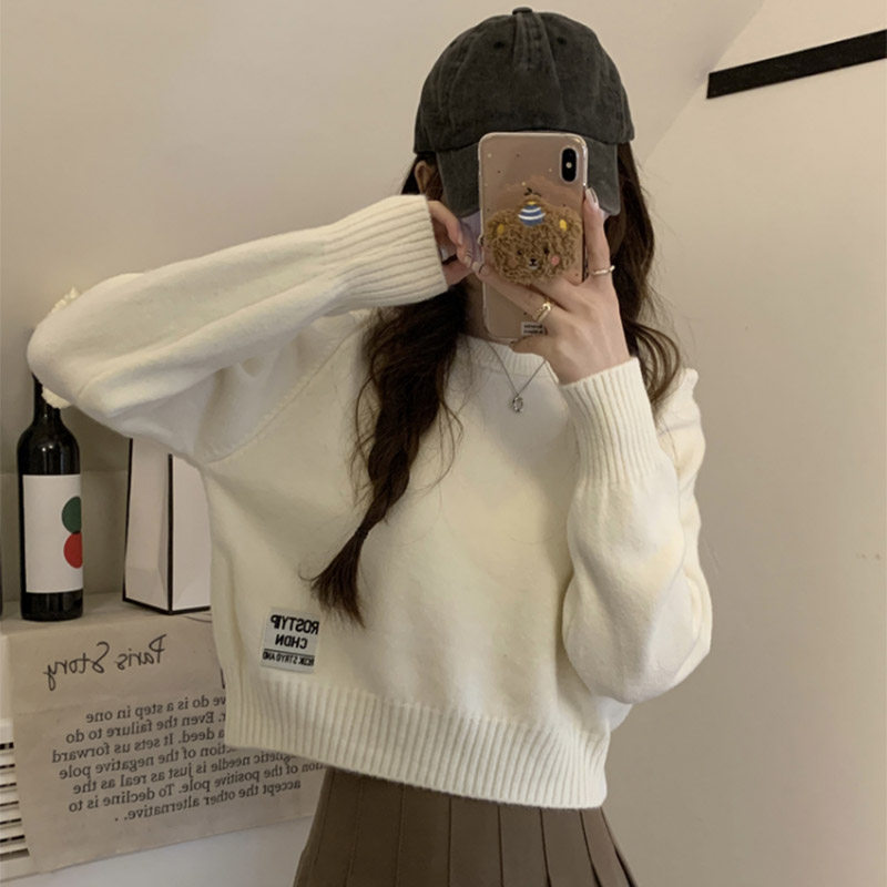 白色短款毛衣女秋冬新款女装针织衫内搭打底衫修身圆领小个子上衣