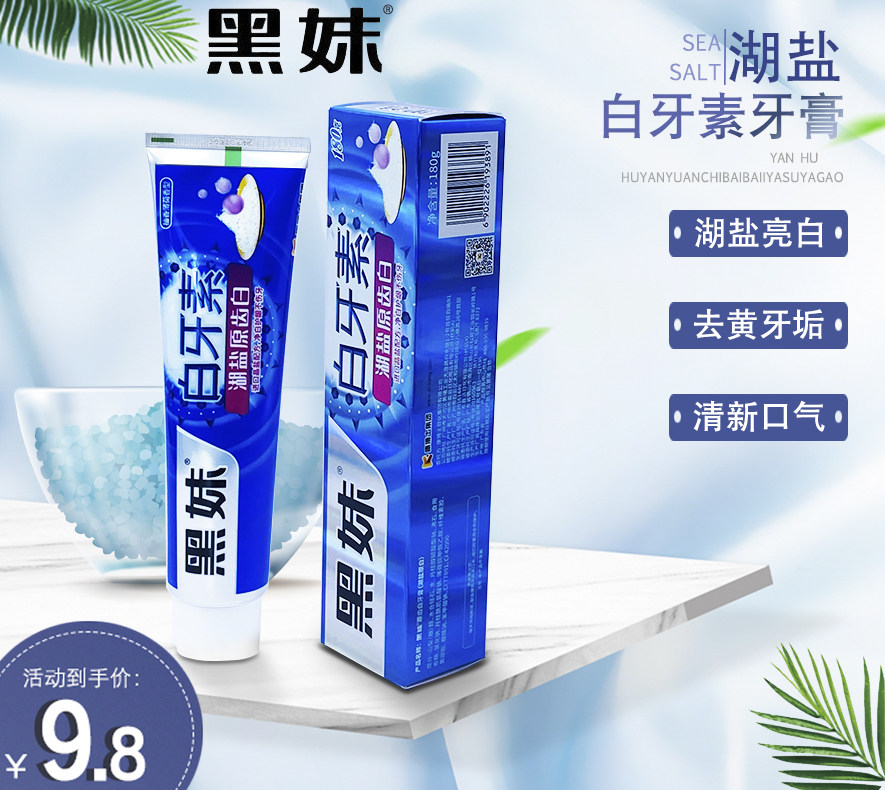 黑妹湖盐白原齿白牙素亮白牙膏去黄牙垢去烟渍牙渍正品家庭装男女