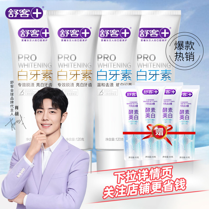 舒客牙膏白牙素祛烟渍去渍劲白亮白牙齿速效去黄茶渍清新口气正品