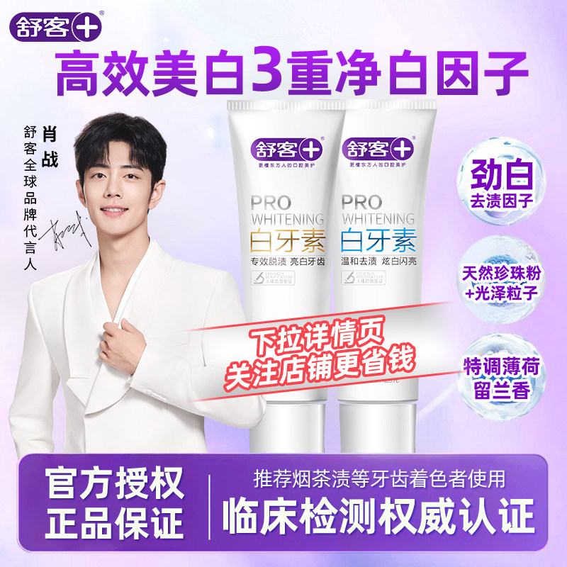 舒客牙膏白牙素祛烟渍去渍劲白闪耀美白牙齿速效去黄茶渍清晰口气