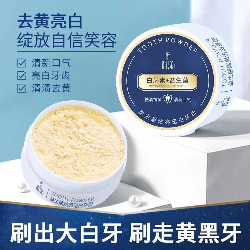 益生菌洁牙粉白牙素去黄洗白牙齿渍清洁污垢去口美臭除牙石白神器