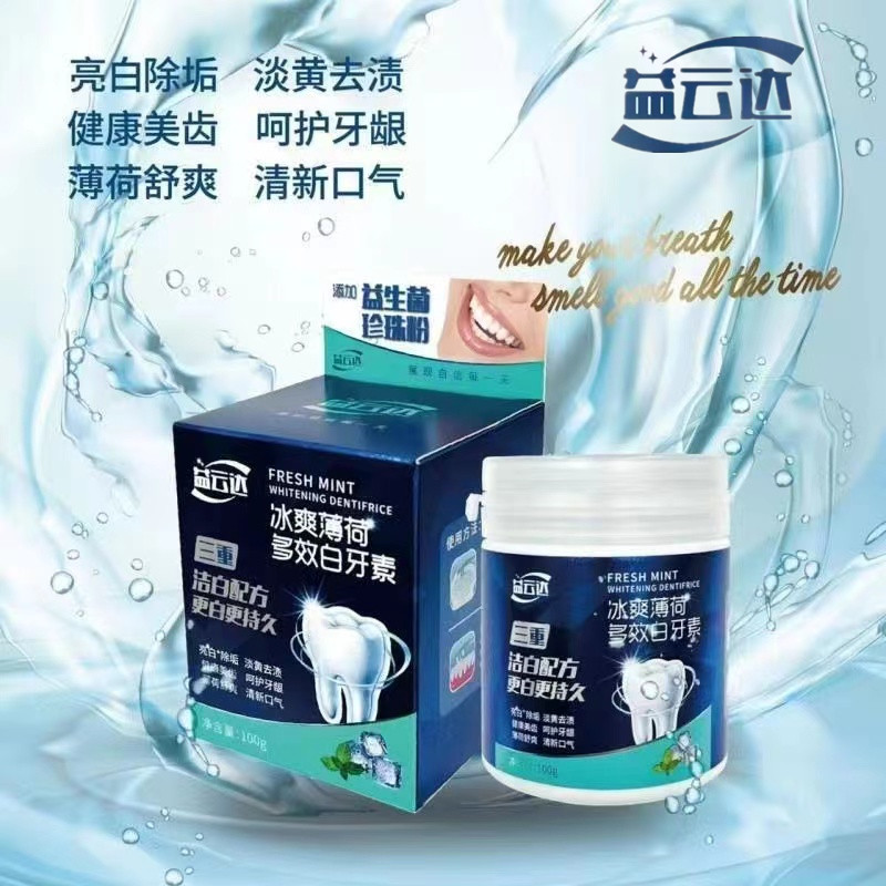 官方正品益云达牙粉去黄去渍除垢清洁口腔固齿亮白薄荷多效白牙素