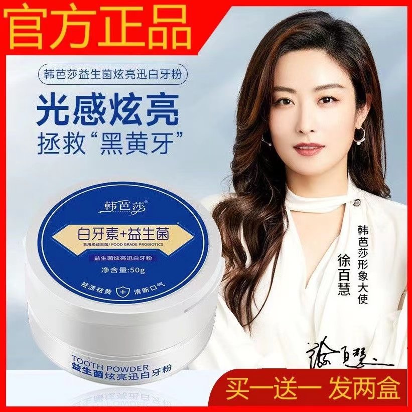 拍1发2益生菌炫亮迅白牙粉美白去牙黄去渍除口臭白牙素洗白烟渍