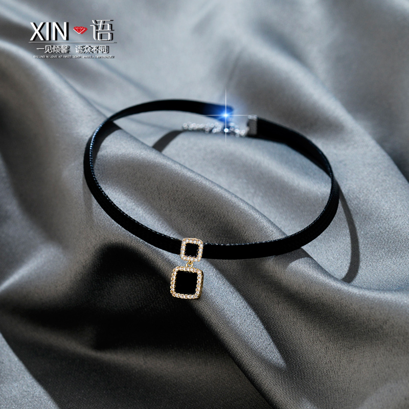 choker项圈项链黑色锁骨链女纯银简约日韩国脖子饰品短款颈链颈带