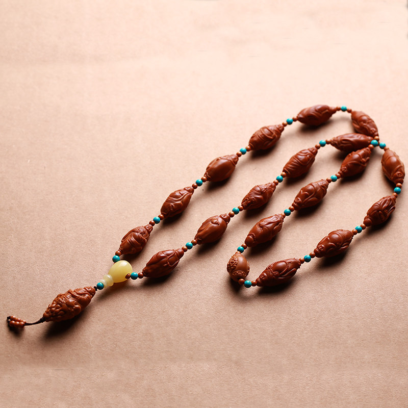 苏工老油核雕刻橄榄胡米粒珠108挂绳长手串DIY项链毛衣链吊坠配饰