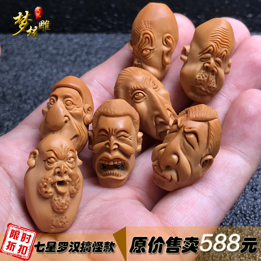 橄榄核雕刻七星罗汉手串橄榄胡Q版手链文玩手串男女送礼原创设计
