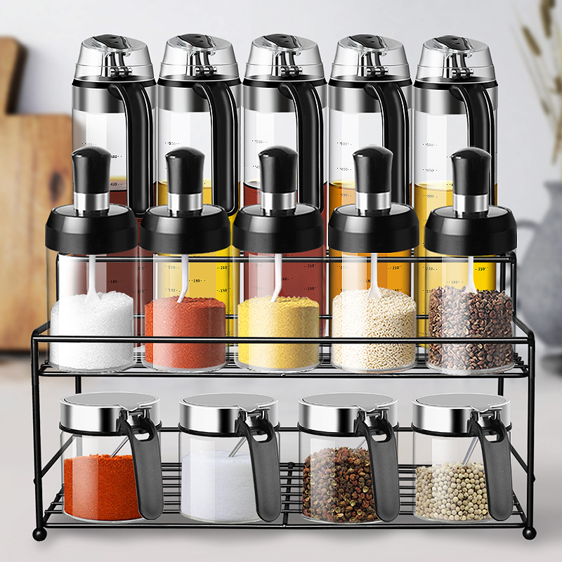 玻璃调料盒调味瓶罐酱油醋橄榄油壶家用套装带置物架鸡精盐胡厨房