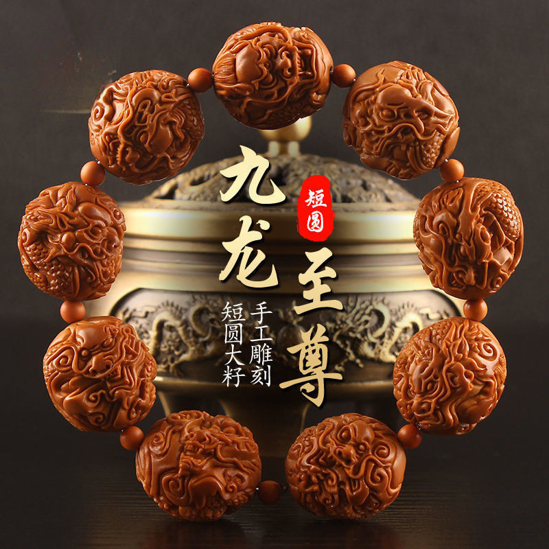 正宗橄榄核手串2.0正圆大师手工刻九龙戏珠核文玩手橄榄胡手链