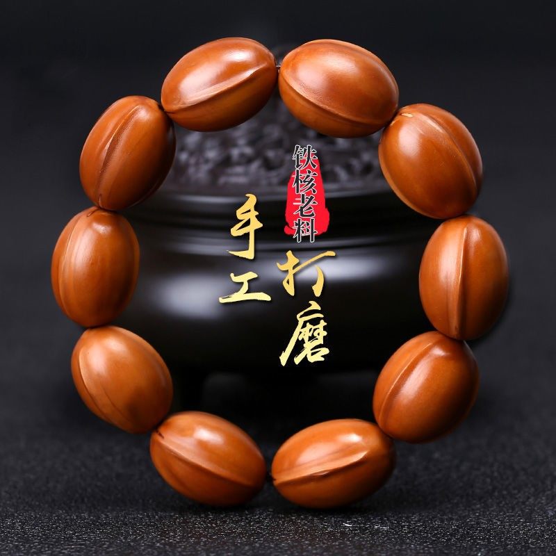 橄榄核铁核原皮手串橄榄胡红皮老料手工去霜打磨抛光手串男女把件