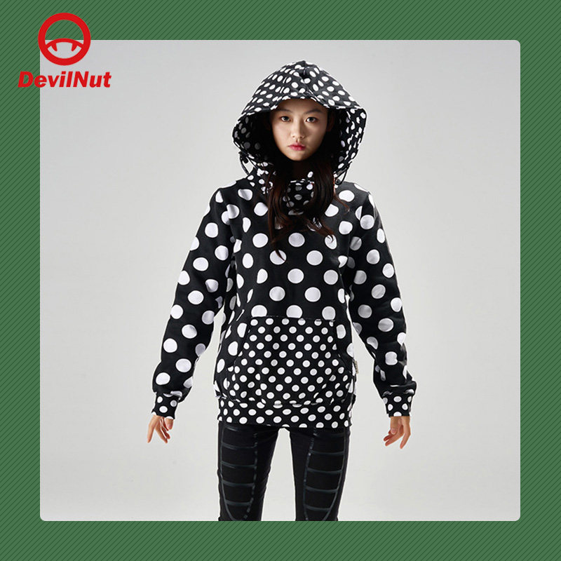 DEVIL NUT潮牌 恶魔 长袖连帽套头圆点迷彩 女式 卫衣 主 AFV
