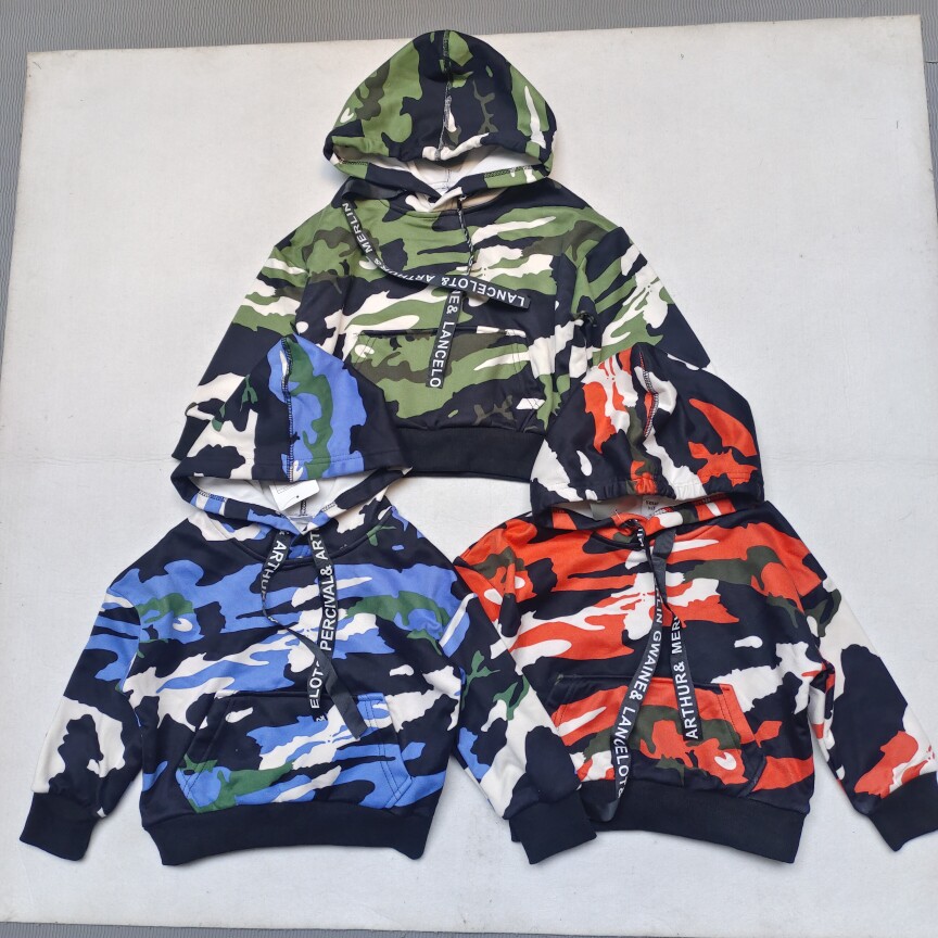 JUZI STORE童装卫衣梭织迷彩印花工装连帽套头衫男女童1014002