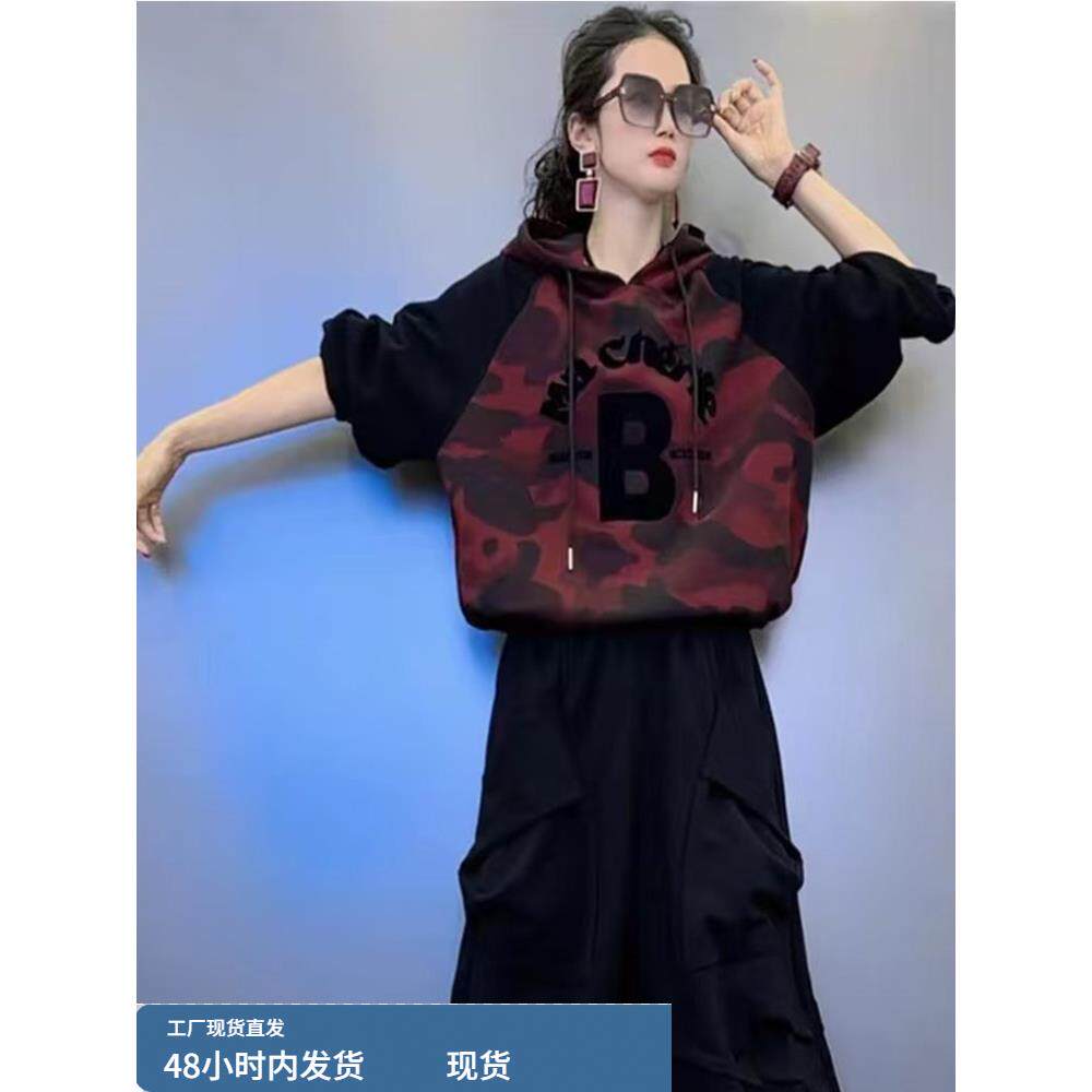 早秋卫衣女春秋款2025新款爆款韩系连帽秋季外套女款迷彩套头上衣