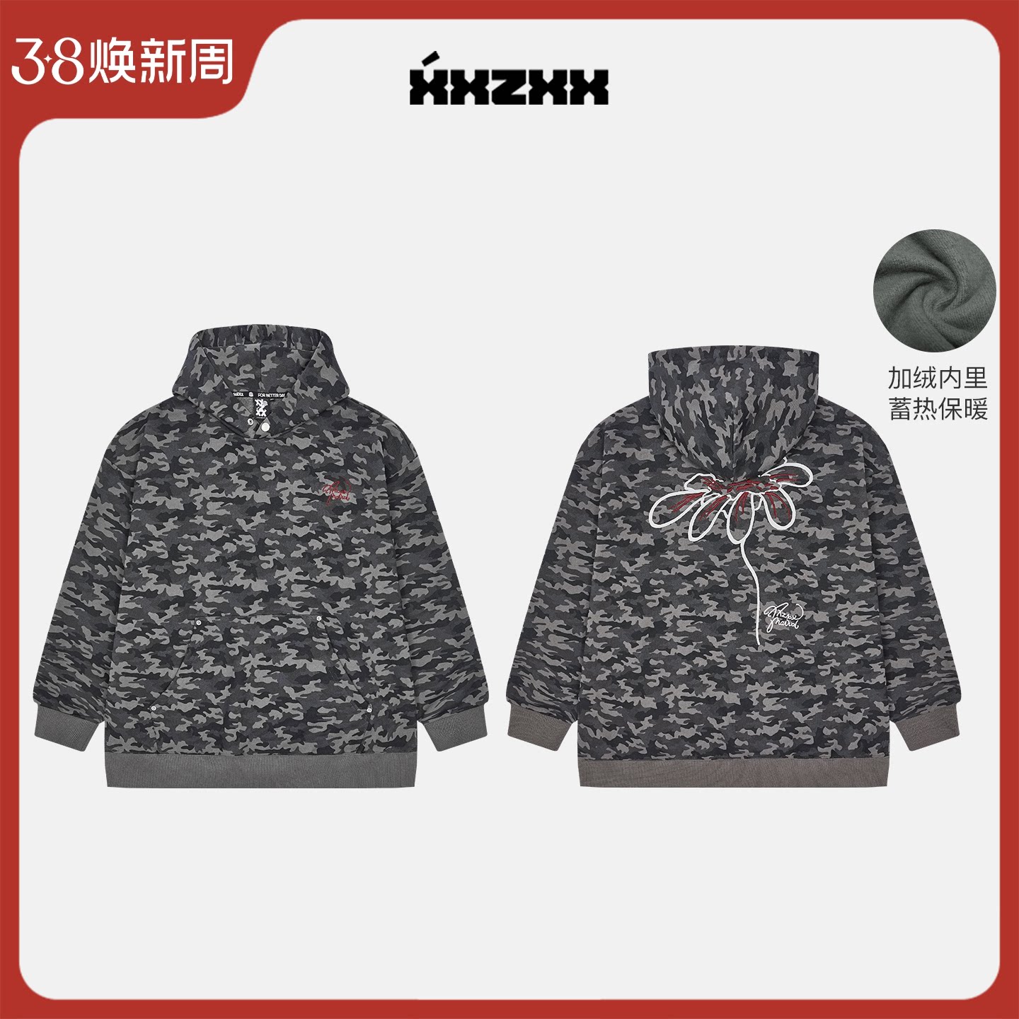 男女同款 春秋季个性运动迷彩拉绒卫衣 连帽套头宽松休闲百搭外套