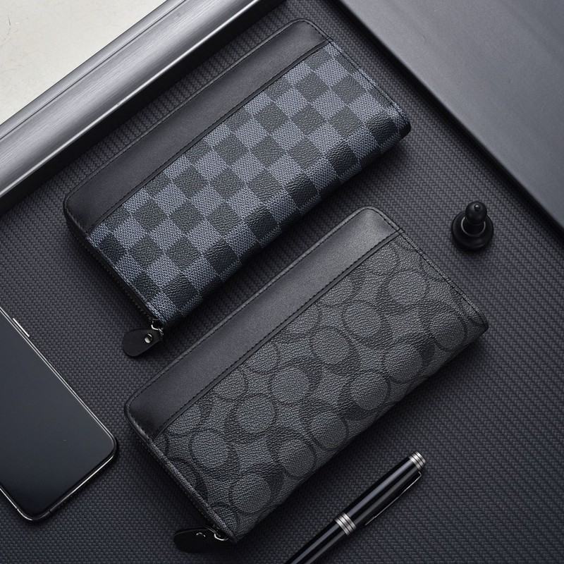长款男士钱包手机包商务手拿包格子拉链钱夹大容量手抓包实用手工