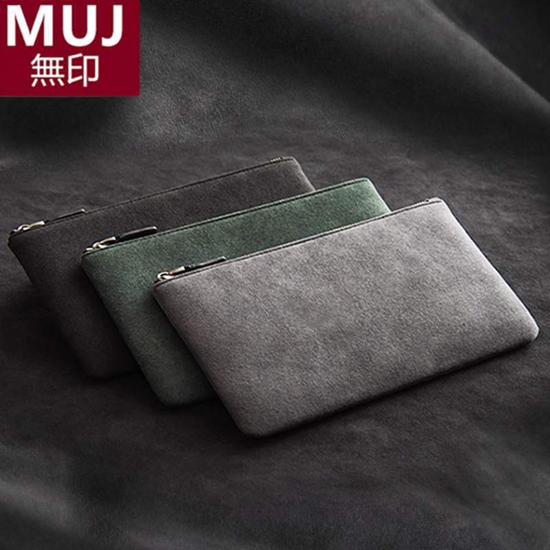 无印MUJ男士翻毛皮长款手拿包商务手抓新款手包简约手机信封钱包